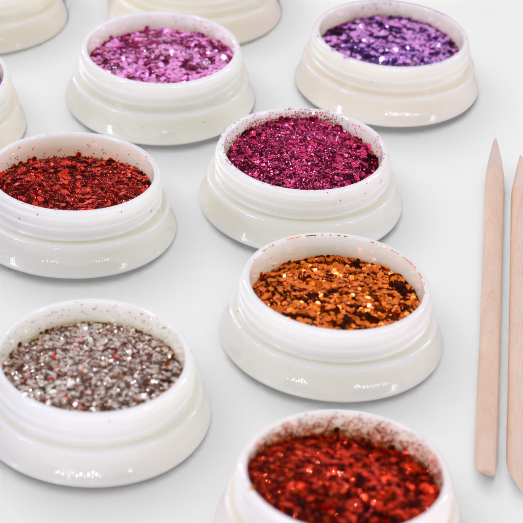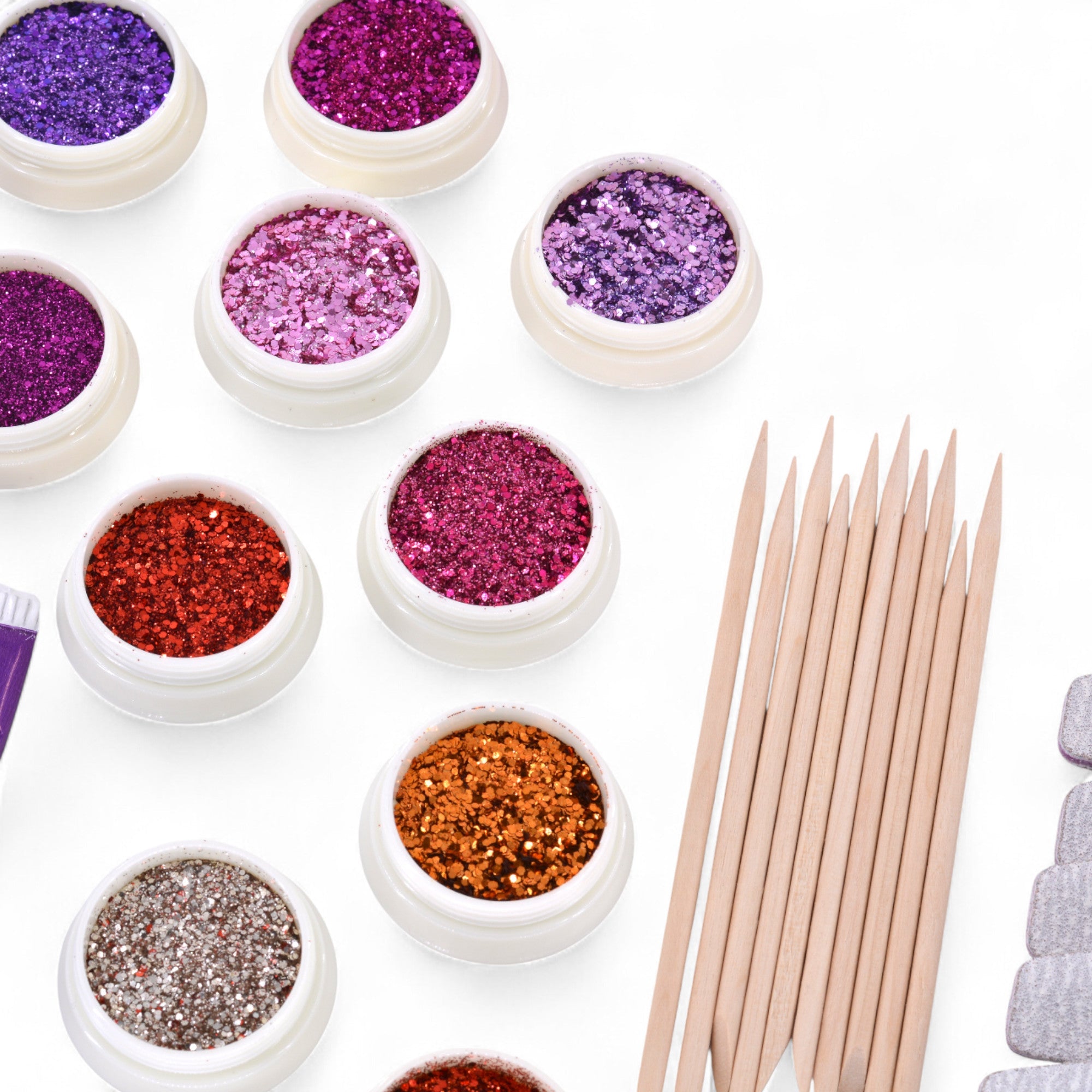 - Poudres Nail Art – 12 au total pour créer des looks variés, du discret au très visible