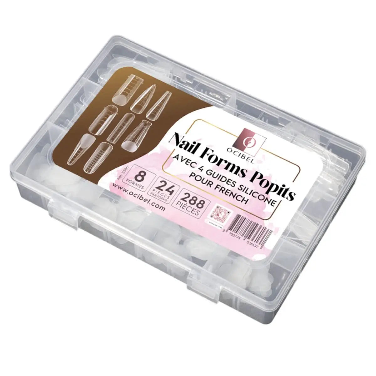Nail Forms Popits Transparentes - 8 Formes et 4 Guides French - 288 Pièces